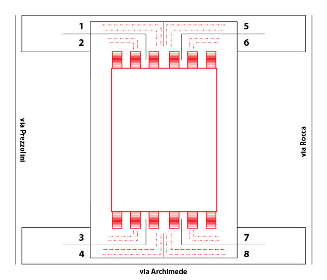 Procedendo in direzione sud sulla SS16, prendere l’uscita 14B per entrare in via Caldarola verso Bari e dopo circa 1 Km svoltare a sinistra in via Giuseppe Prezzolini
